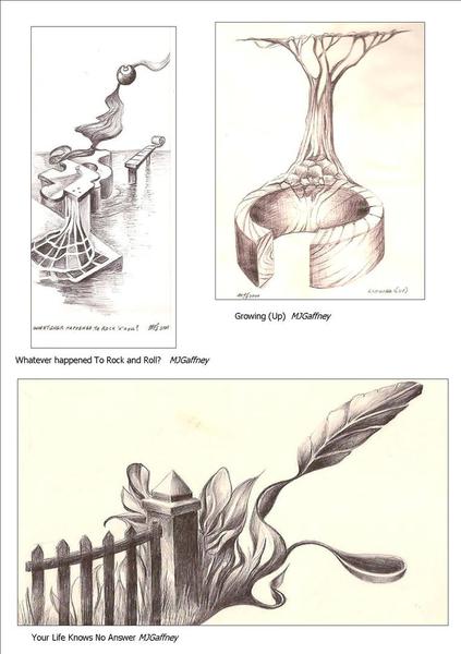 My work extends to include Surrealistic style pieces, mainly in black and white. They are fantasy images and focus on combining a variety of subjects and thought processes. The titles are as important as the images. The gallery below contains a small selection.